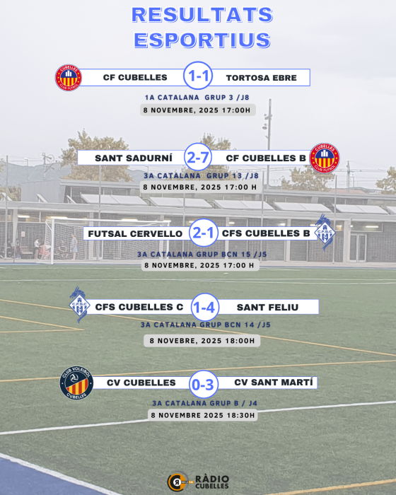 El CFS Cubelles B va caure 2 a 1 a la pista del Futsal Cervelló, mentre que el CFS Cubelles C va perdre a casa 1 a 4 davant el Sant Feliu.