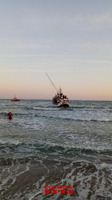 Els Bombers i Salvament Marítim rescaten una persona d’un veler encallat davant la platja Llarga