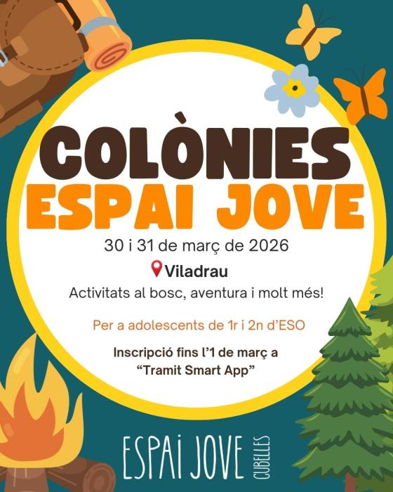 L’Espai Jove de Cubelles ha posat en marxa una nova proposta d’oci educatiu amb l’organització d’unes colònies de primavera adreçades a joves de 1r i 2n d’ESO. L’estada tindrà lloc els dies 30 i 31 de març de 2026 a Viladrau, en un entorn natural privilegiat.