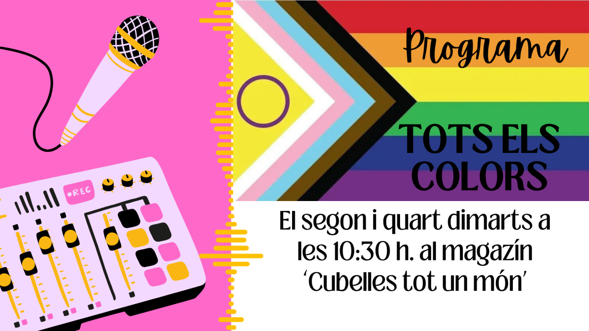 Una nova proposta arriba a la programació de Ràdio Cubelles amb l’objectiu de visibilitzar i informar sobre la diversitat: "Tots els colors", un programa dedicat íntegrament a la realitat LGTBIQ+. Aquest espai estrenat l'octubre de 2025 vol ser un punt de trobada per conèixer persones del col·lectiu, ampliar coneixements sobre la cultura LGTBIQ+, trencar estereotips i reivindicar drets. A més, ofereix una mirada històrica i actual sobre el moviment, explicant des de quan i com s'han assolit algunes de les conquestes socials i legals més importants.