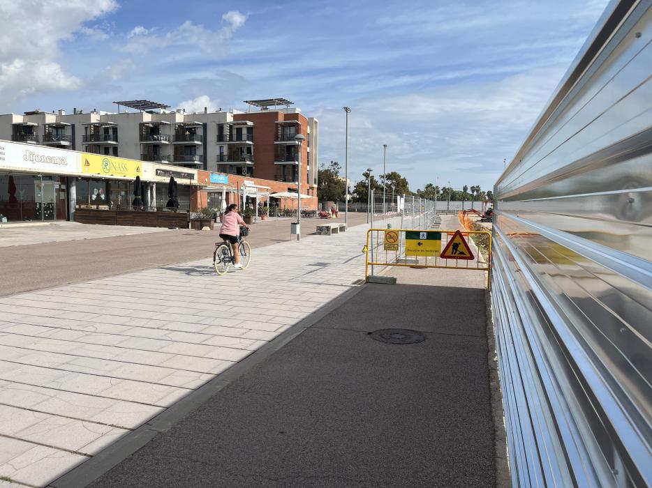Pel que fa a vianants i bicicletes, es garanteix una continuïtat al costat del mar mitjançant uns itineraris provisionals que travessen el parc del Prat fins al carrer de Pau Claris. Aquests recorreguts estan senyalitzats amb cartells en els accessos des de la rambla del general Josep Moragues, els carrers de Pau Claris i de Ramon Llull i el passeig de la Marina.
