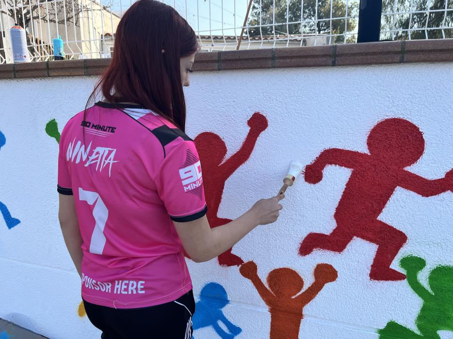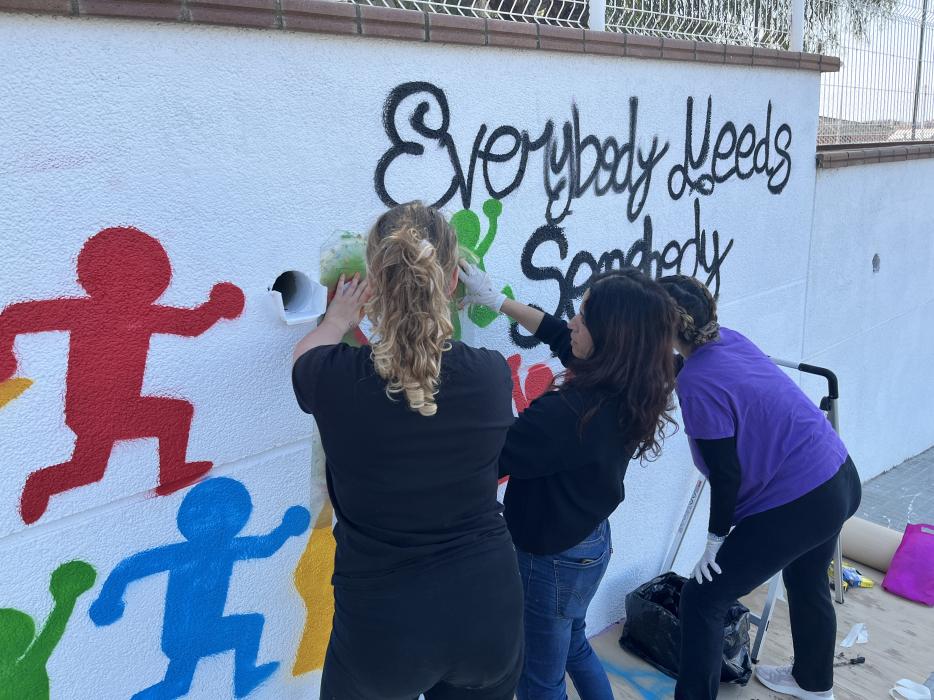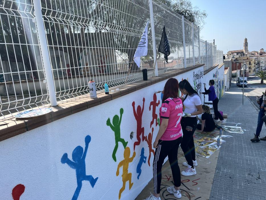 El mural ja es pot veure des d'aquest dilluns en una de les parets del carrer que puja des de la sala sociocultural de l’escola Charlie Rivel fins a l’Espai Jove.